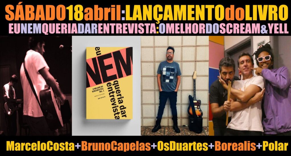 Sábado, 18 de abril: LANÇAMENTO do livro “Scream & Yell: eu nem queria dar entrevista”, com shows de Polar, Borealis e Os Duartes