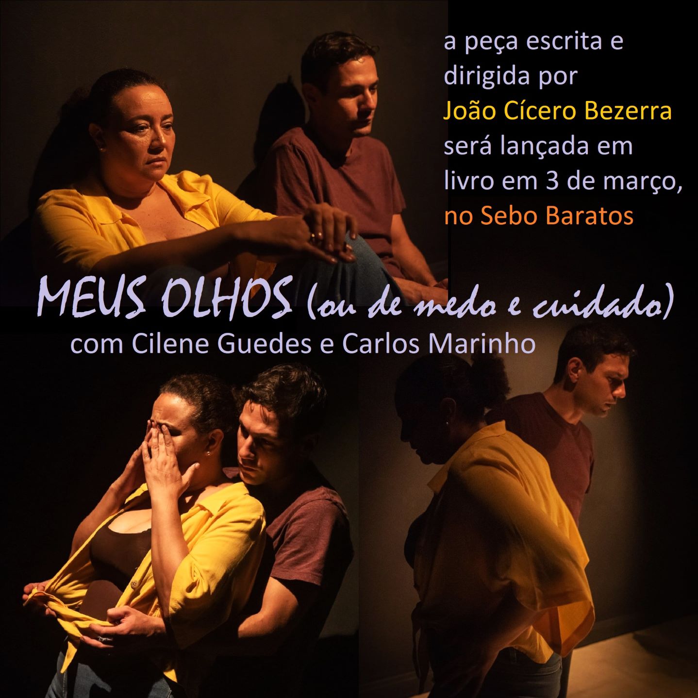 O gerente da Baratos e a esposa Bia se apaixonaram pela dramaturgia de João Cícero ao assistirem a peça “Meu Coração (ou de carinho e de sexo)” na Sala Baden Powell em 2022. Depois o casal ficou ainda mais impressionado com “Meus Olhos (ou de medo e cuidado)”, encenada no pequeno, charmoso e acolhedor Espaço ABU. (Onde também foi encenada “Tarde”. Obviamente o casal assistiu também!).