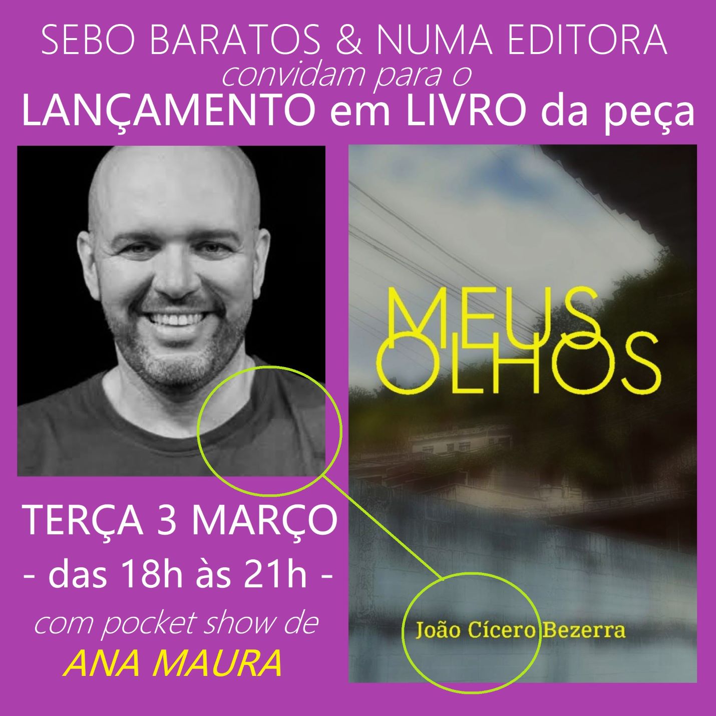 Pois “MEUS OLHOS” SERÁ LANÇADO EM LIVRO, pela Editora Numa, NA TERÇA dia 3 de março, no Sebo Baratos.